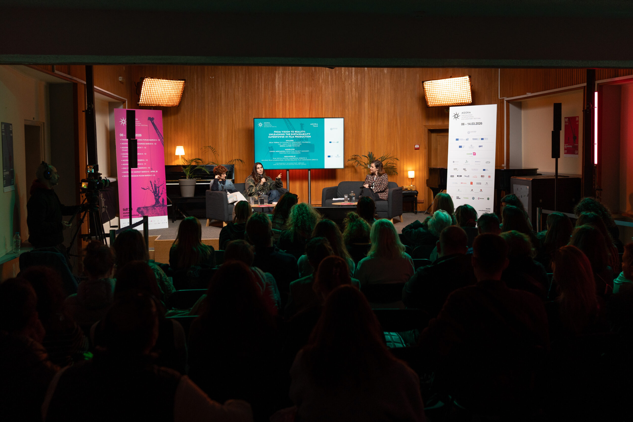 Questo secondo workshop è stato sostenuto anche dal 28° Festival Internazionale del Documentario di Salonicco, che il 10 marzo ha ospitato il dibattito AGORA talk : “Dalla visione alla realtà: liberare il superpotere della sostenibilità nella produzione cinematografica”. Moderato da Linnea Merzagora, il panel ha visto la partecipazione di Julia Tordai e Serena Alfieri, che hanno messo a confronto il punto di vista dei produttori e quello degli esperti di sostenibilità, dando vita a un vivace scambio di opinioni su come le priorità creative, logistiche e ambientali possano coesistere e rafforzarsi a vicenda durante tutto il ciclo di vita di un film.