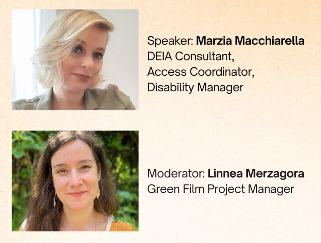 Inclusività fin dalla progettazione: integrare DEIA* in ogni produzione | Diversità, equità, inclusività e accessibilità (DEIA) non sono solo parole alla moda, ma pilastri essenziali di un’industria cinematografica sostenibile, etica e di successo. Questa sessione offre strumenti e strategie pratici per incoraggiare assunzioni inclusive, set accessibili e narrazioni eque. Scoprite come supportare le produzioni nella creazione di ambienti in cui tutti si sentano visti, ascoltati e apprezzati.