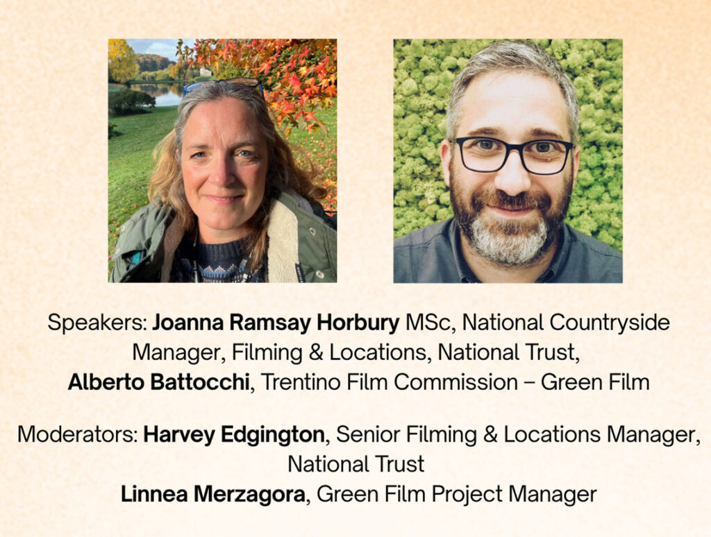 Le tre sessioni sono state moderate da Linnea Merzagora, Green Film Project Manager, con Harvey Edgington, Senior Filming & Locations Manager presso il National Trust, che si è unito alla terza sessione, e sono state condotte con cura da Venia Vergou e Sara Hernandez, rispettivamente Network Manager e Communication & Social Media Manager di EUFCN.